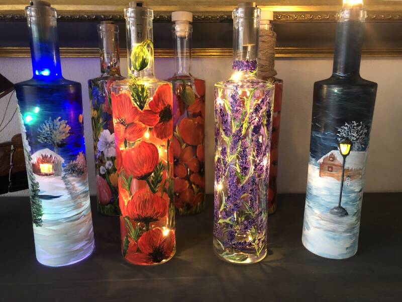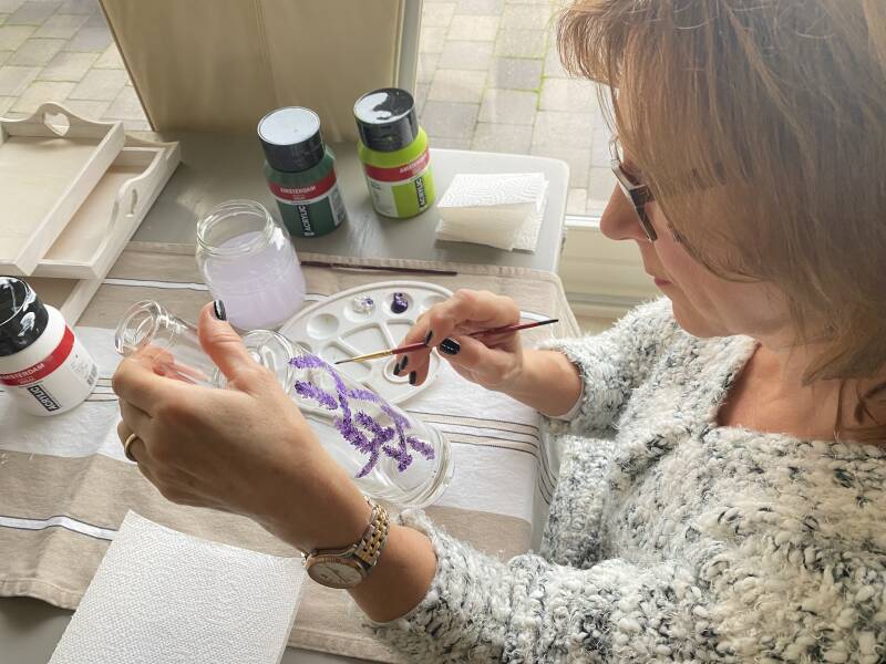 Hieronder een impressie van het werken met acryl- of glasverf op diverse materialen.